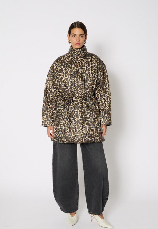GVOLEO | Blouson oversize waterproof à col montant imprimé léopard